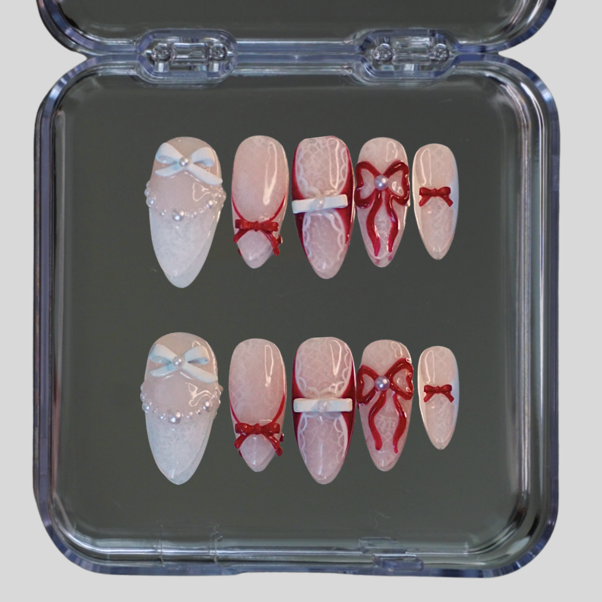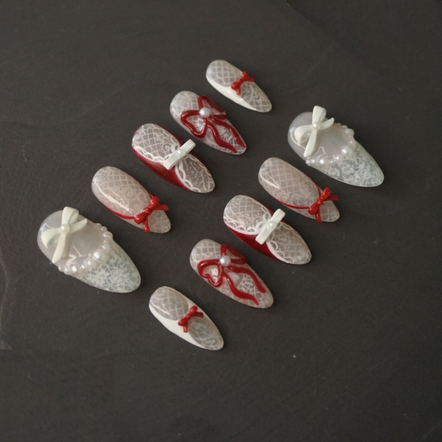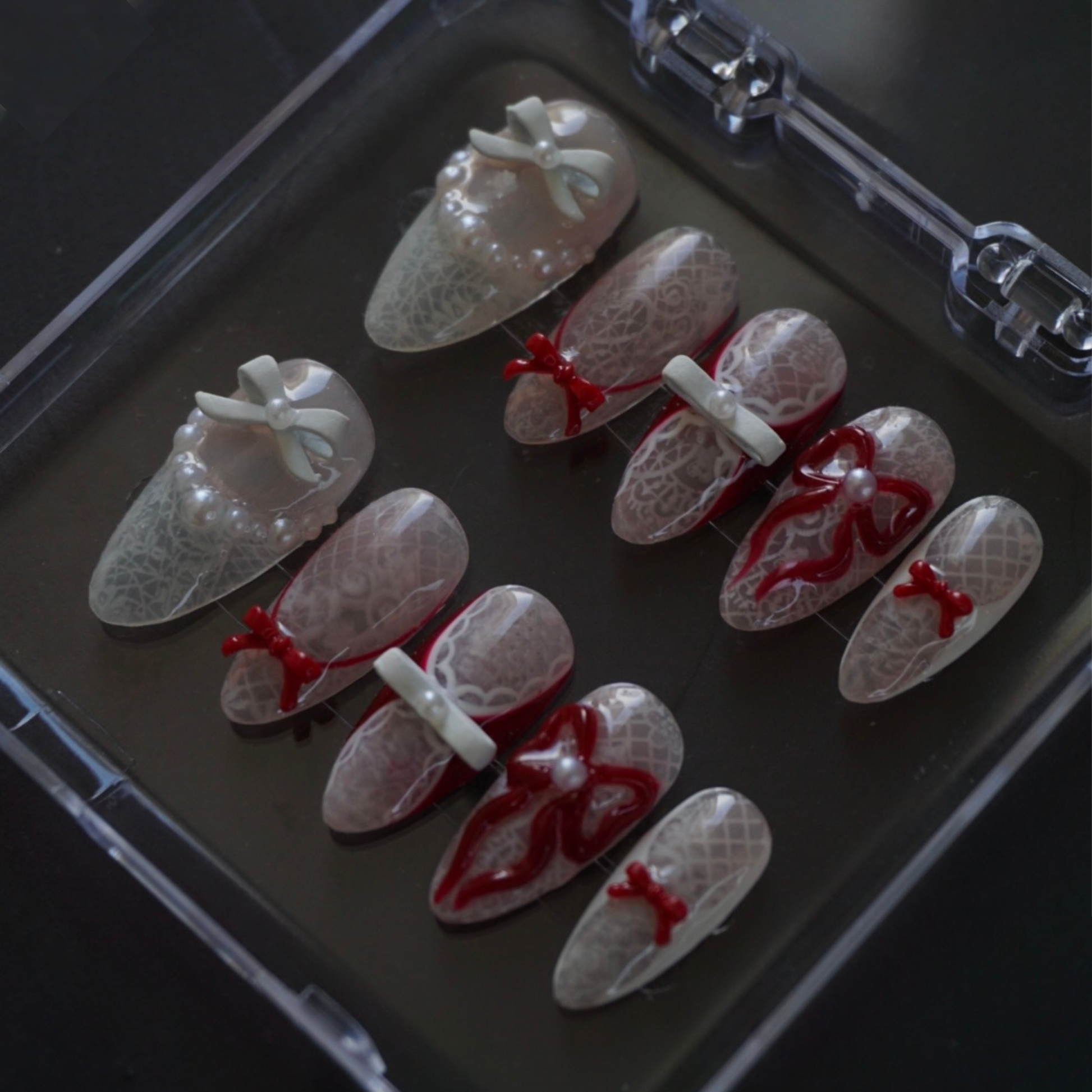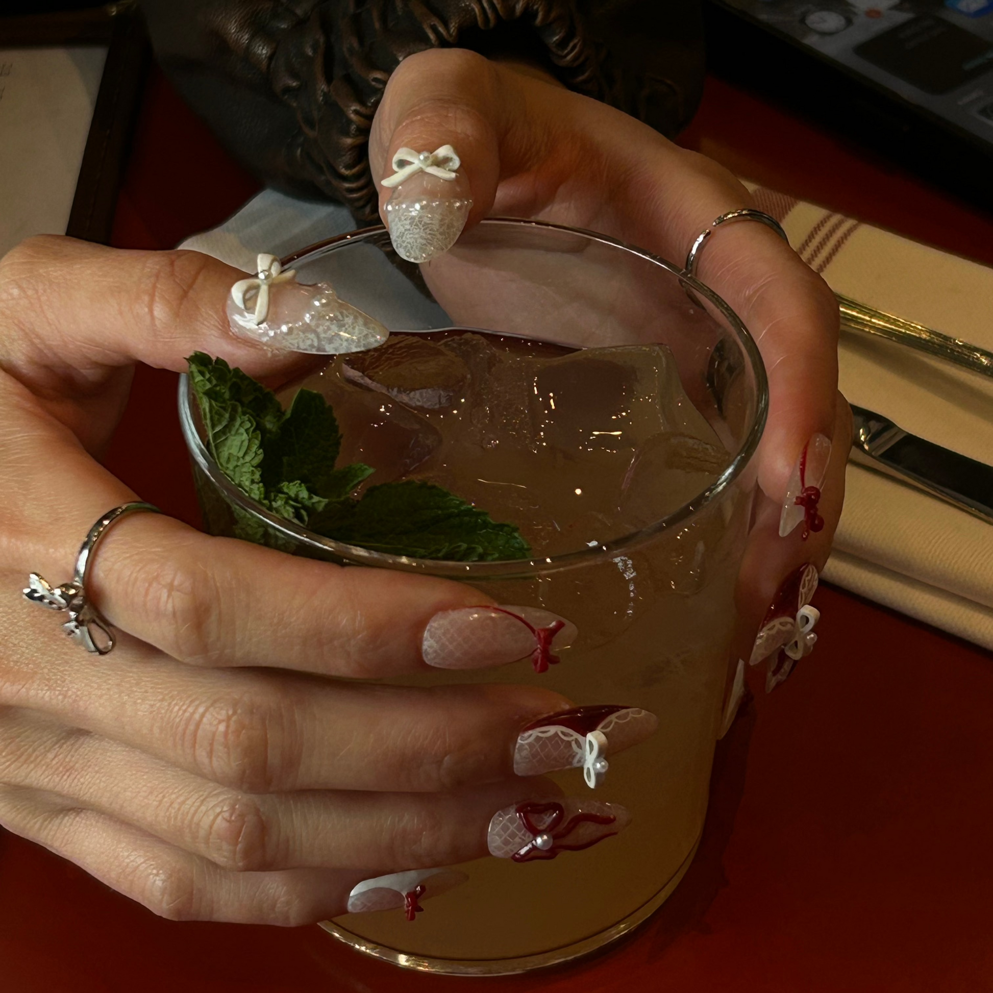 NAILILOTA LACE KISSES is the ballet's timeless elegance and the intricate art of lace, creating a design that’s both soft and seductive. Each nail set is designed with a balance of sensuality and sweetness, just like the enchanting dance of a prima ballerina